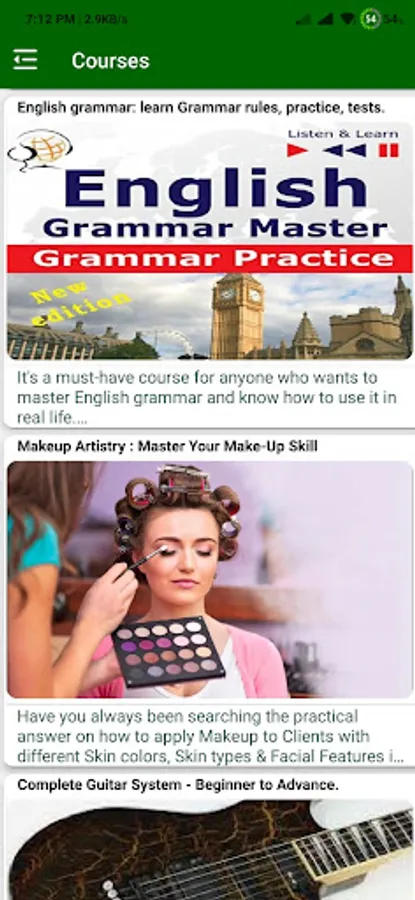 Make-Up Artistry ,GRE, IELTS speaking, IELTS fluency formula(speaking),IELTS writing, ,IELTS Academic, English Grammar, GERMAN language, GUITAR system, T-shirt Design, Video editing, Drawing course.