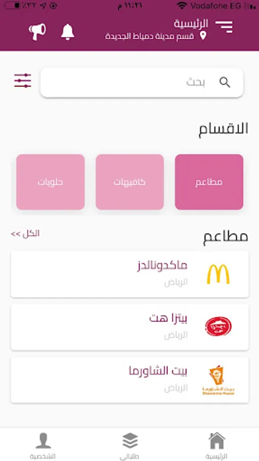 ● What did I find for you? See the restaurants in your area, do you want a burger? pasta ? Shawarma? You see we have many restaurants, and each restaurant you can see its own evaluation, and the offers that treat it.