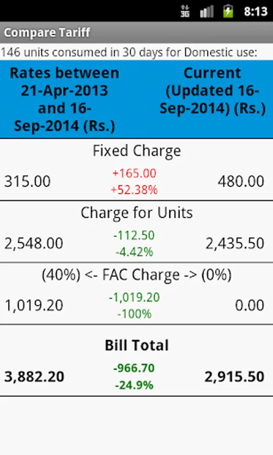 3- in depth breakdown of the bill computation (Fixed Charge / Charge for units / FAC charge)