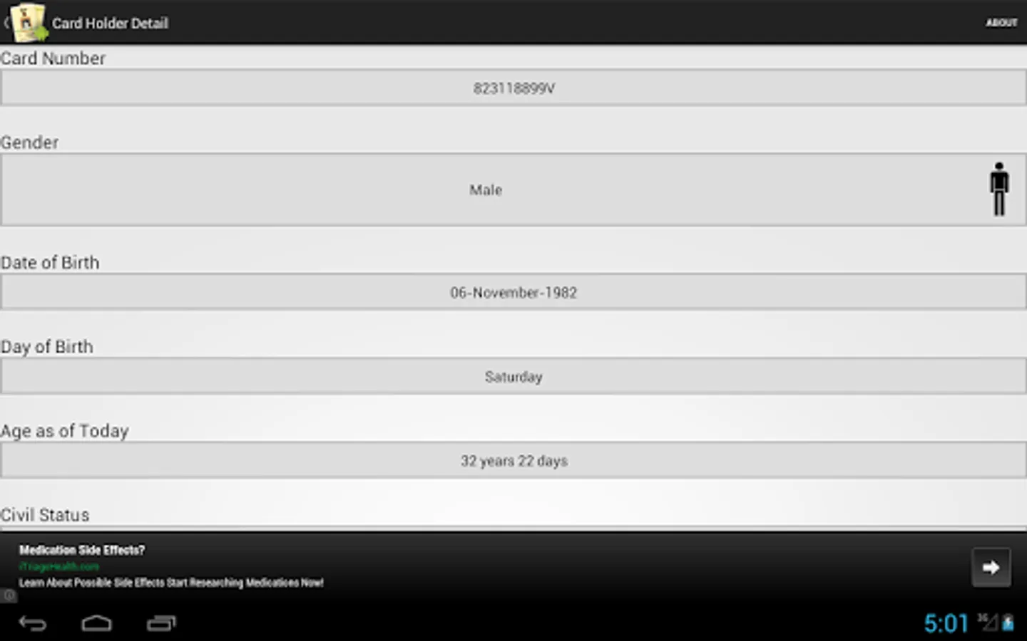 -Civil status of the card holder