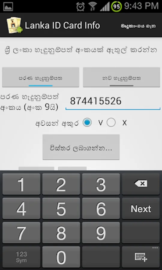 Extracts and Displays the details below from a valid NIC number