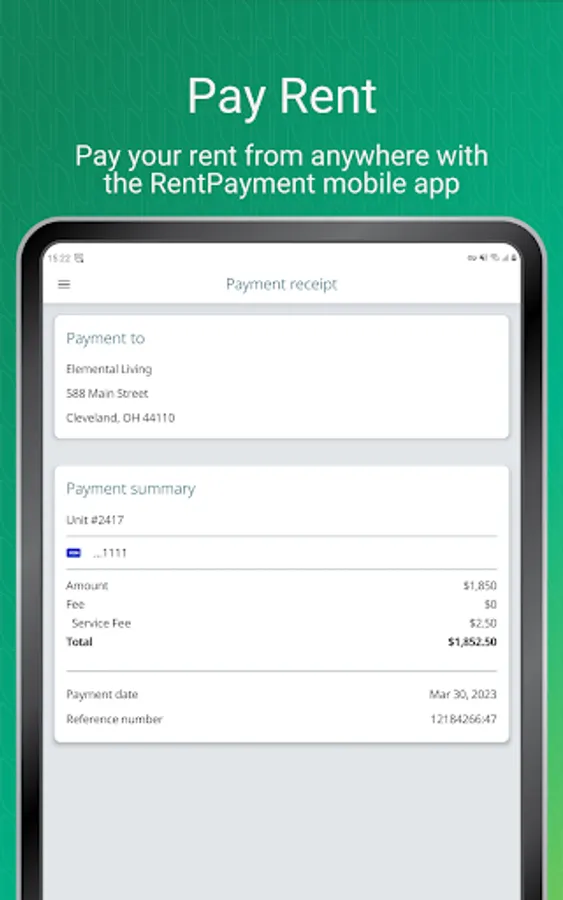 Pay your rent, your way from anywhere with the RentPayment™ mobile app. RentPayment makes it easy to avoid late fees by helping you send payments, schedule reminders, edit autopayments, and view your payment history from any device.