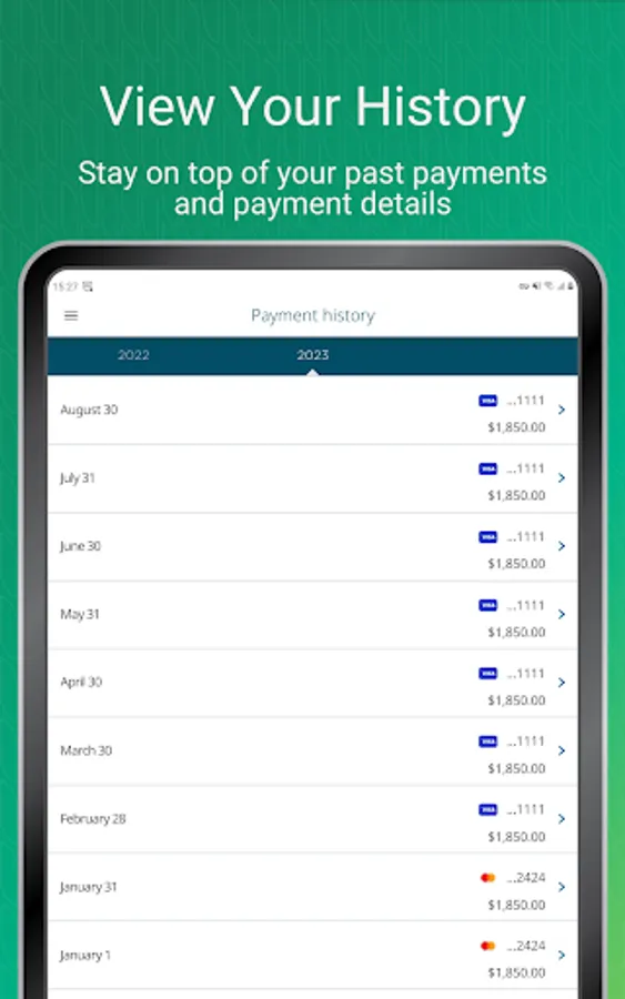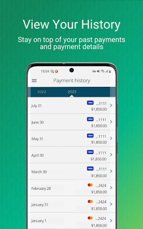 • History: See all your past payments and payment details made using RentPayment