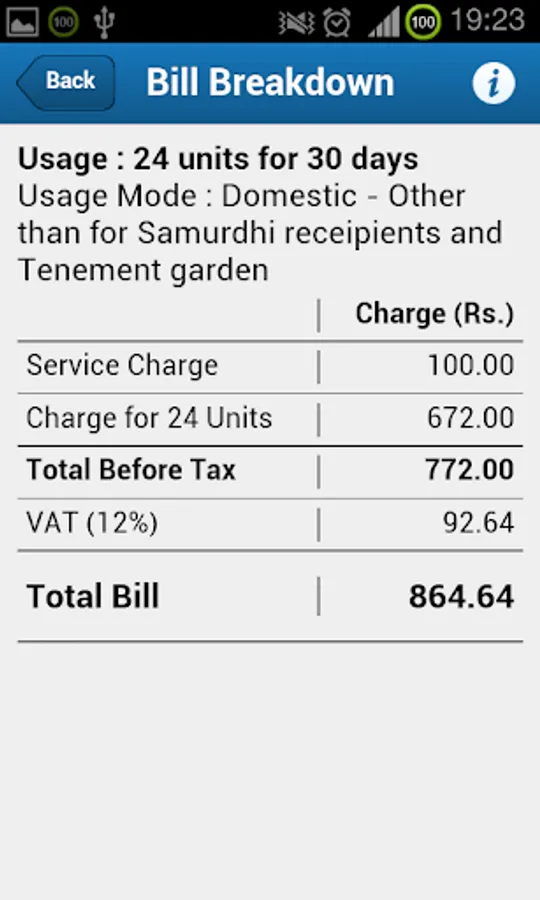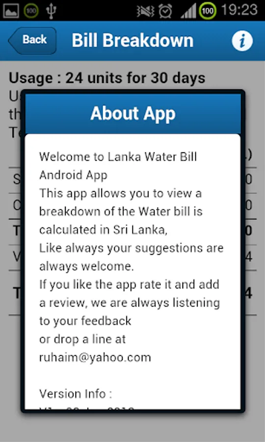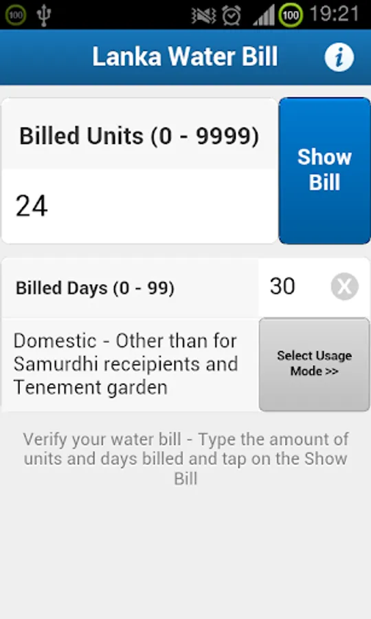 Allows you to get a bill breakdown of the Lanka Water Board Tariff Scheme