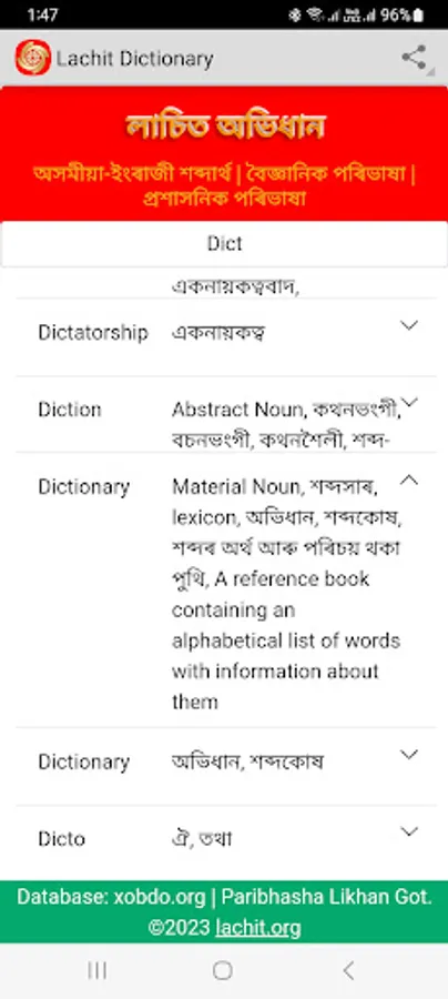 Database courtesy: xobdo dot org and Paribhasha Likhan Got (Asomiyat Kotha Botora).