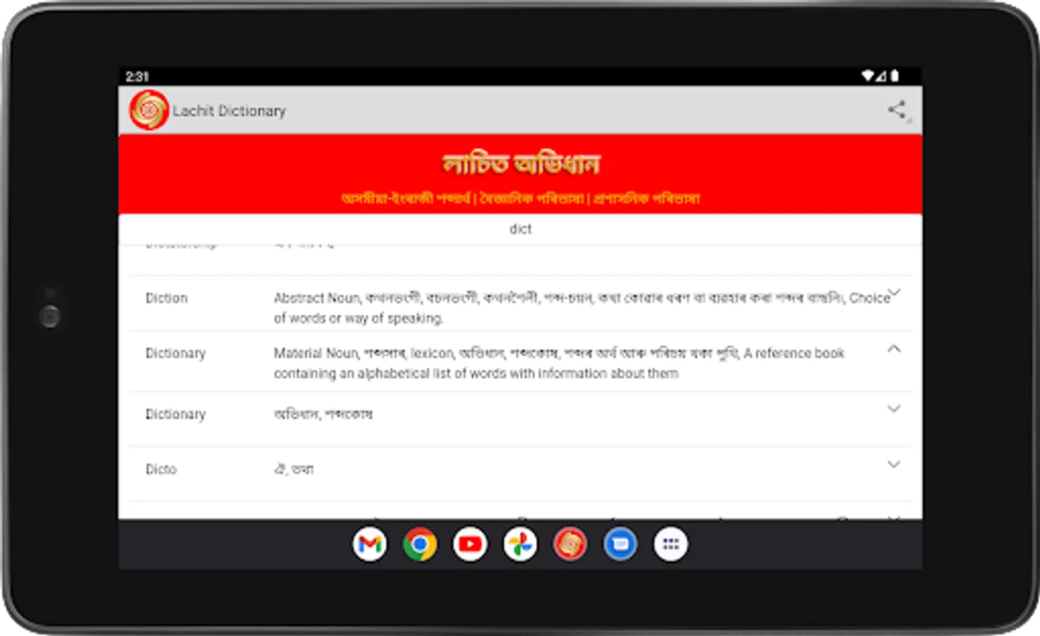 লাচিত অভিধানৰ ভিতৰত চাৰিখন অভিধান আছে: