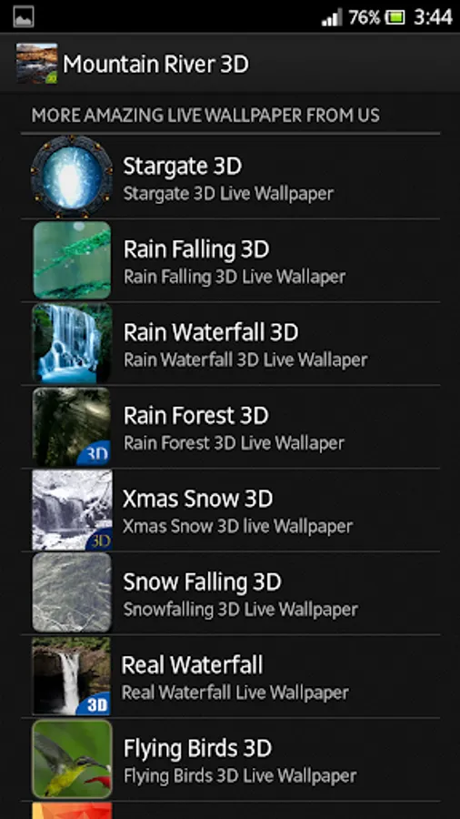 We Always try to make New Experience for Your Mobile Device. this New Mountain River 3D live Wallpaper Will give You a Amazing Nature Experience Without Going there. This is a Natural and Real 3D. its cool New 3D live Wallpaper for you Mobile Device. If You Want Great Feeling About Nature. try it now.
