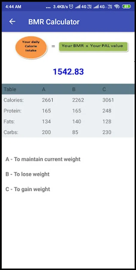 This calculator helps you determine how many calories, protein, carbs, fats your body required to increase or reduce to gain , lose and maintain your body weight.
