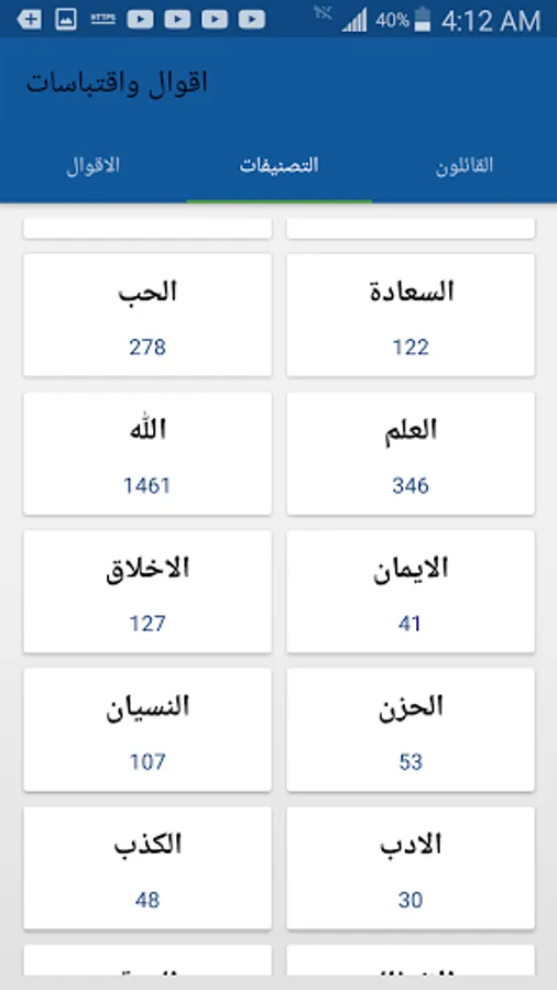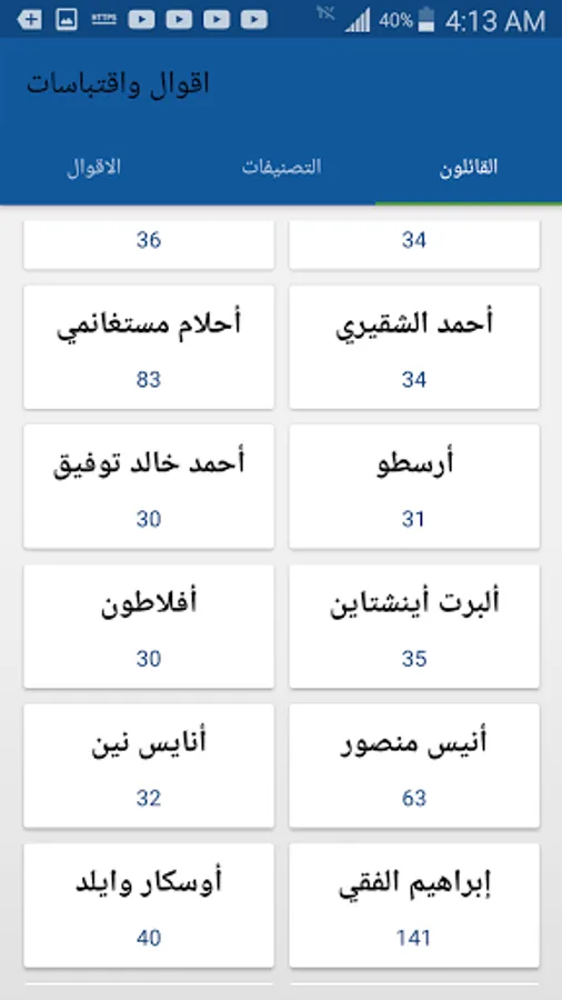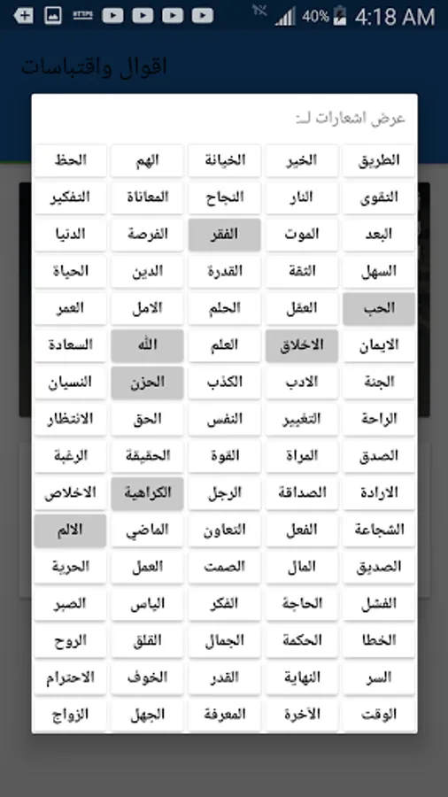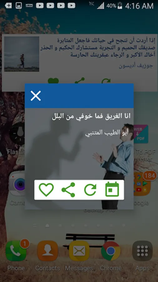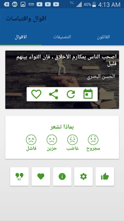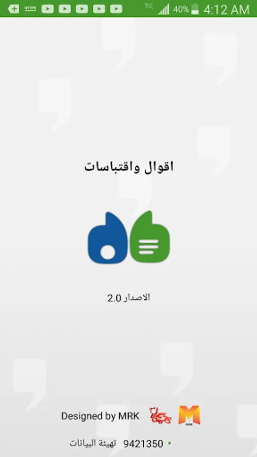 This program contains many Arabic quotes and quotes for many of those who say it, and does not need an Internet connection to work, and notifies the user with a quote every period specified by the user, and it contains an addition to display quotations on the main screen.