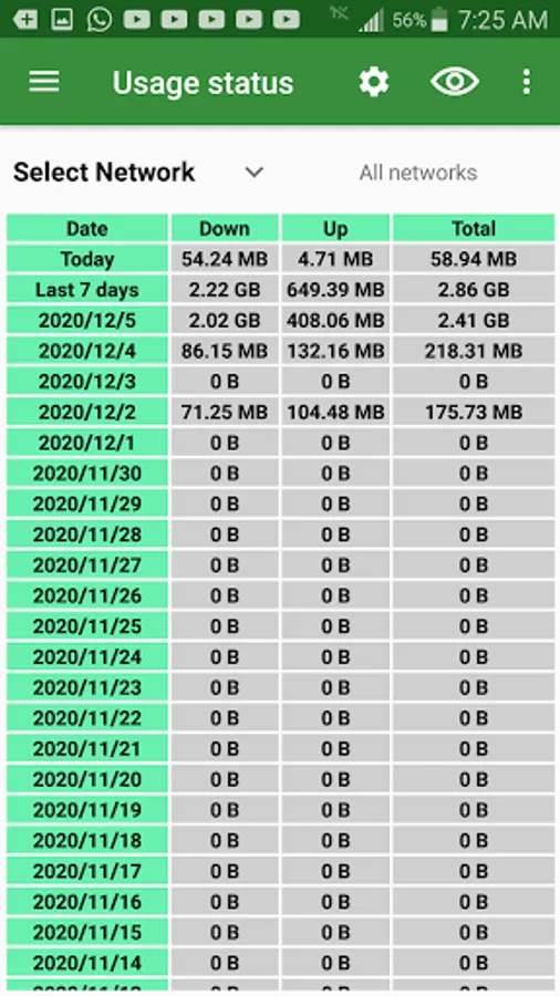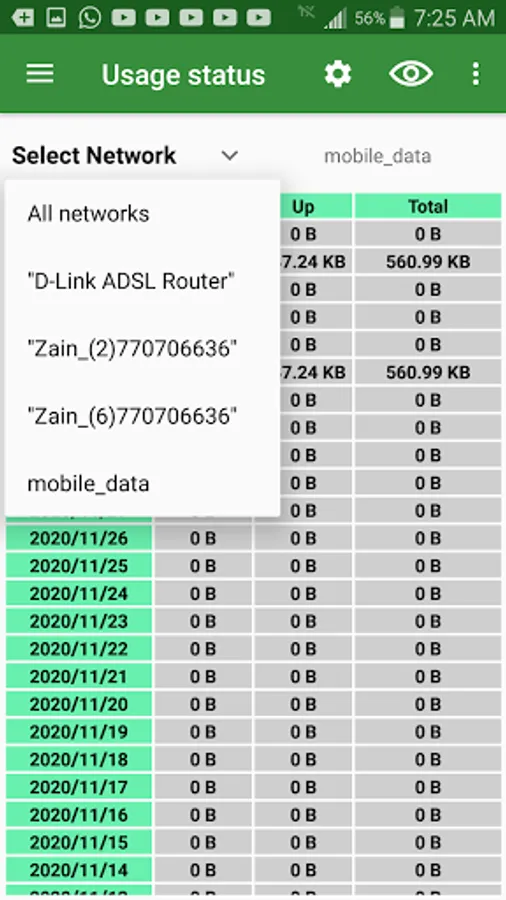 The application was designed by mrk(Mohammad Rassam Karman), it shows the internet connection speed and usage for (etch WiFi network/Mobile Data), and it saves usage for later access and check.