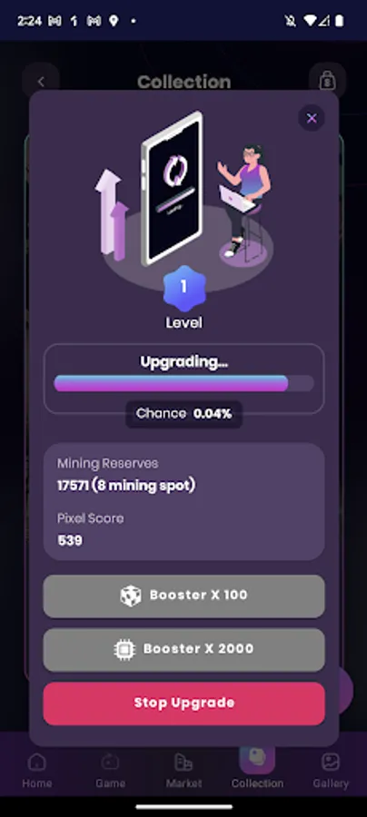 The NFT from your content can be upgradable. Every time you succeed to upgrade, you would mine crypto currency and your NFT would get stronger.