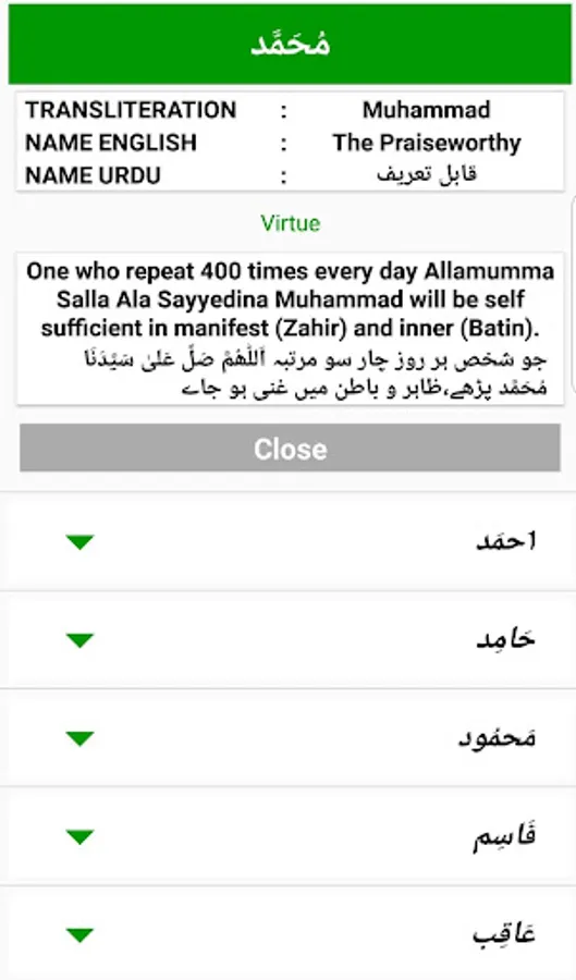 contain 99 names of Allah and Muhammad and masnoon dua.