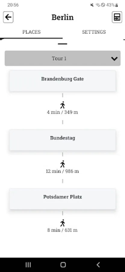 TourPal supports you with this. Specify the places you want to see, how long you'll stay and the maximum number of places you want to see per day, and TourPal will find the best tours for each day so that you have to walk as little as possible.