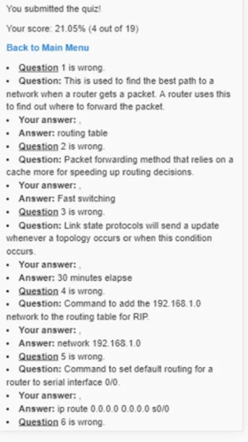 These quizzes can help prepare you for the Cisco CCENT Exam 100-105. Updated to be relevant for the CCNA v3 content. New Questions and Quizzes added periodically to add more variety and challenge. Quiz format is in multiple choice. There are 10 quizzes available ranging from network fundamentals to VLANs and NAT and more.