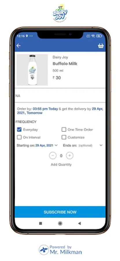 ●Pause/Resume Subscriptions - Heading for a vacation with your family? You can always pause the monthly Dairy Joy subscription and resume it once you’re back. Our billing tracker will ensure hassle-free deductions for the days you have paused the online milk delivery. You can also change the quantity of milk, anytime.