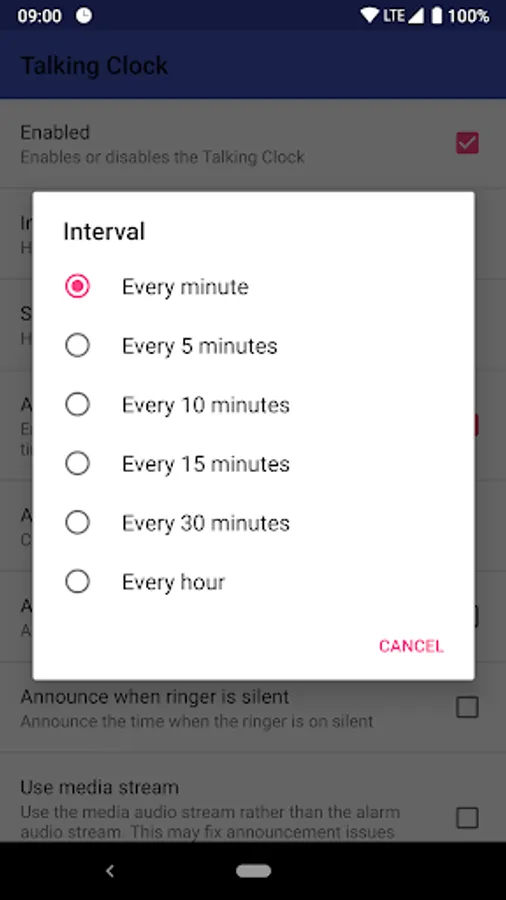 - Uses the alarm volume stream by default, but can be set to use the media volume stream.