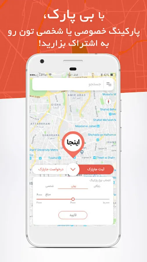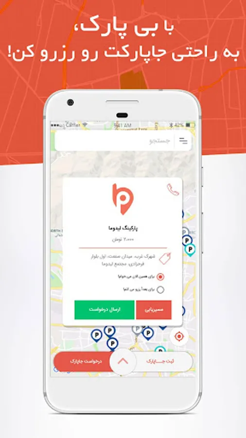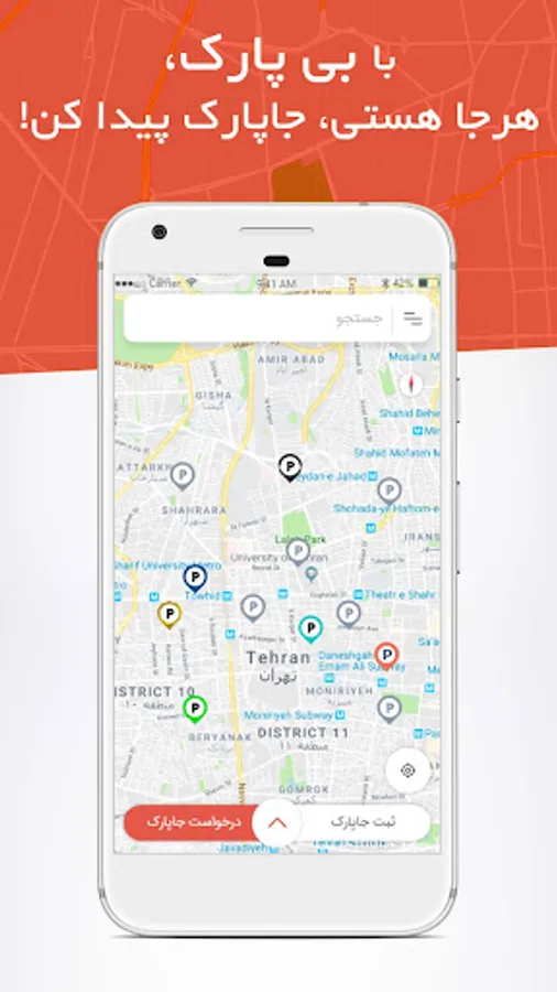 BiPark application is offered online car parking in Tehran and other major cities. "BiPark" is a Mobile Application for online car parking in Tehran and the big cities. With the "BiPark" you can use any of the parking spaces around you wherever you are. Currently, there are about 300 "parking spaces in Tehran" and the suburbs available to you and "BiPark" leads you wherever you are to the "nearest parking lot".