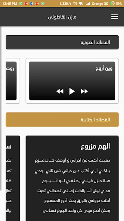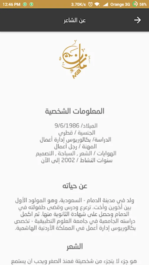 يحتوى التطبيق على نبذة تعريفية عن سيرة حياة الشاعر و العديد من القصائد الصوتية و الكتابية وطرق التواصل مع الشاعر .