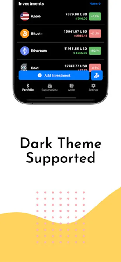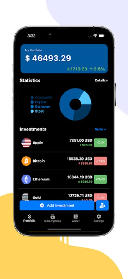 ✅ You can track your cryptocurrency, stock and exchange investments and get statistics for them.