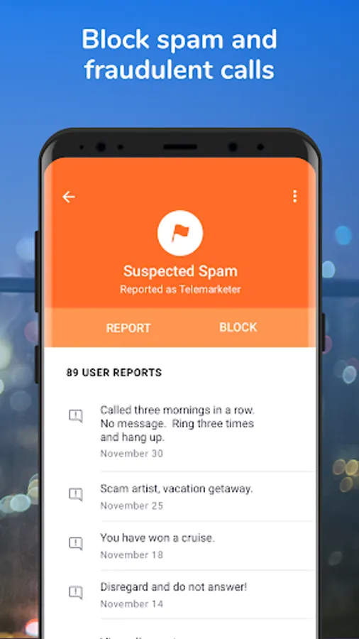 - Report spam calls to warn other users