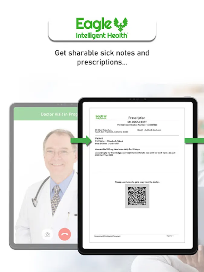 The Eagle Health app allows the physician to create digital sick notes that can be provided to your employer to explain absences from work. It also makes it easy to access electronic prescriptions, which ensures you can receive the medicine you need to treat health issues.