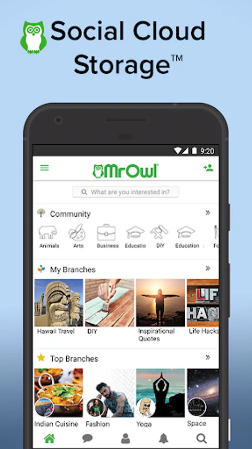 MrOwl is a Social Cloud Storage™ platform that brings together the best of search, social, and the cloud all in one app. Save it. Find it. Share it.