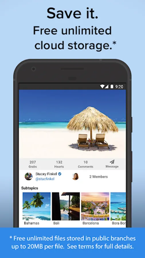 Save it. Free unlimited cloud storage for content you share with the world.*