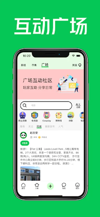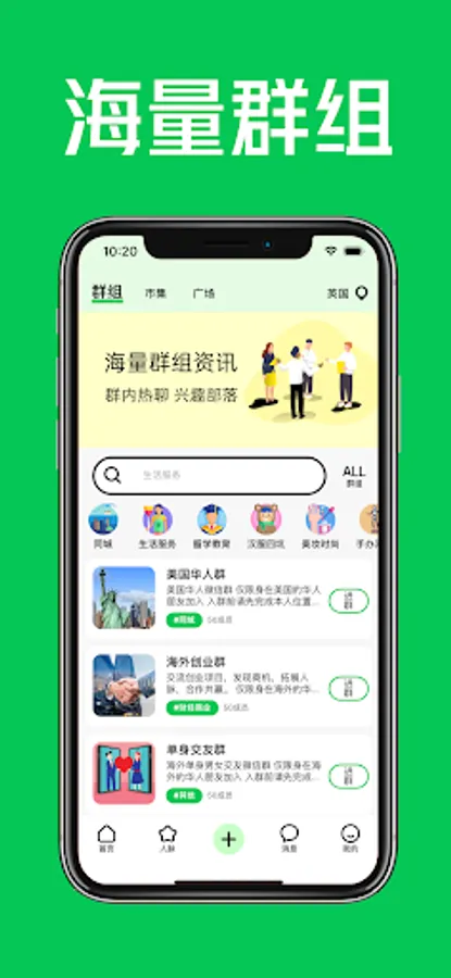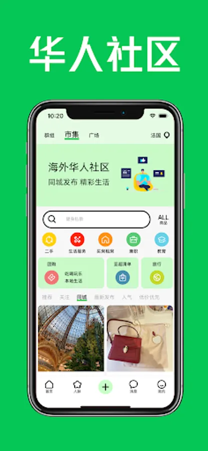 A living community for overseas Chinese students, publishing second-hand goods, life services, housekeeping and cleaning, door-to-door repairs, homestay rentals, part-time job recruitment, etc. Discover surrounding attractions, gourmet food, and Chinese WeChat groups. Real social, chat and make friends with friends in the same city.