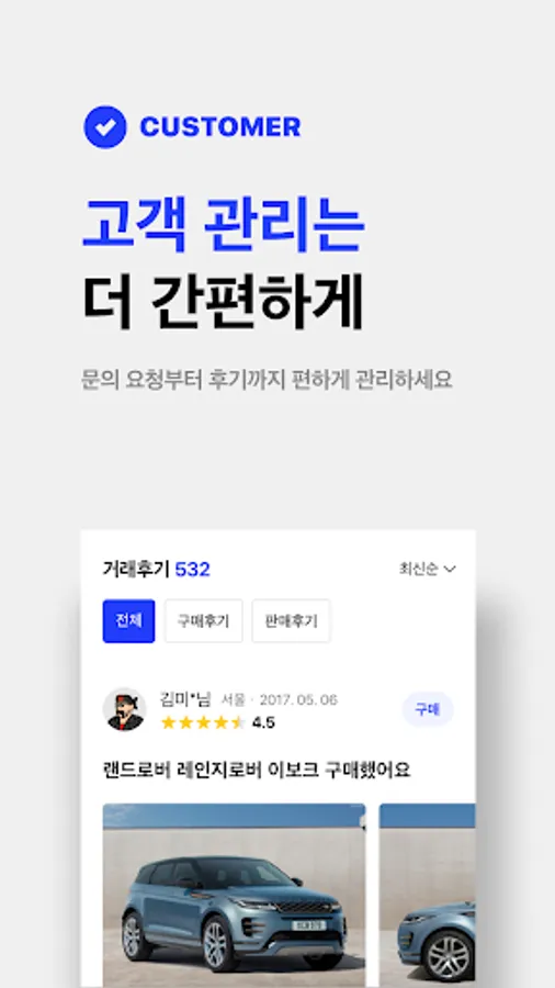 We provide a healthy sales environment that only the dealers who passed the visit screening in 35 steps directly operate.