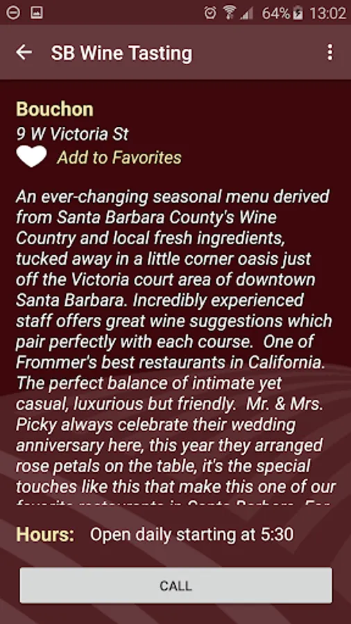 • Add to Favorites: This button allows you to add a given winery to your favorite list