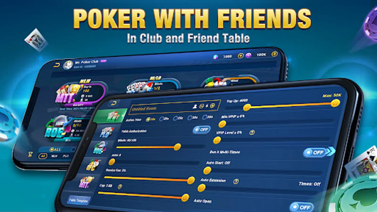 Enjoy best private club-based online poker home game on Mr. Poker! Choose your favorite game type, one-click to create private table and share with friends to play now!