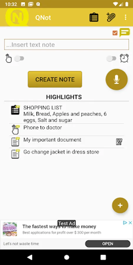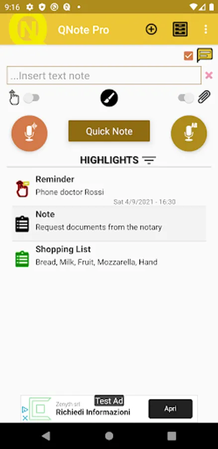 To quickly use QNOTE Pro you will not need to search among the many apps installed on your device. Simply click on the notification.