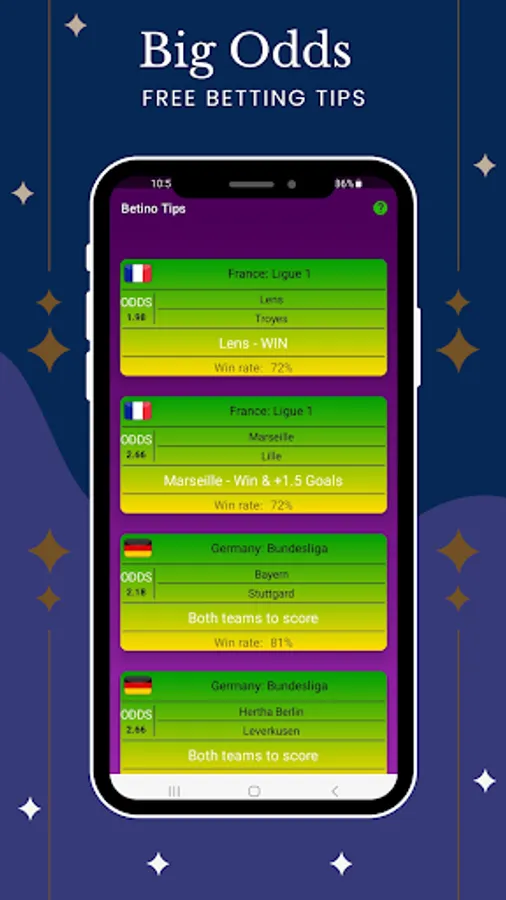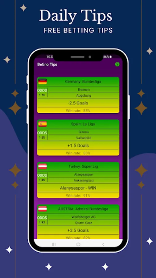 You are reviewing the best application in betting tips category. Our experts work for you and aim to offer you betting prediction every day. You can use our application for free, all this is very simple to do.