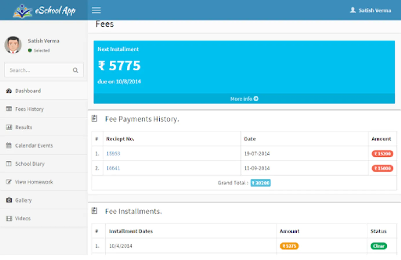 5. Fees : Track fees schedule, fee paid, upcoming installments and pending installments for all the fee to be paid !