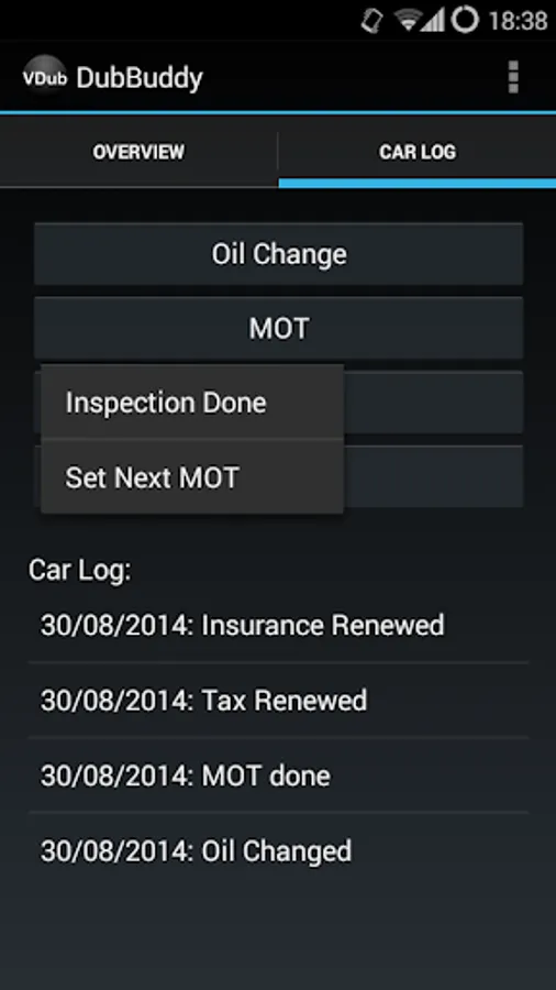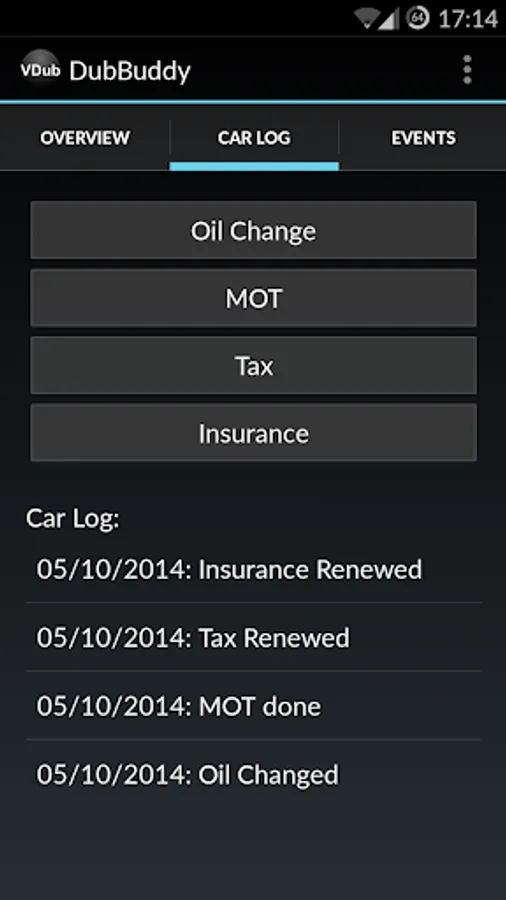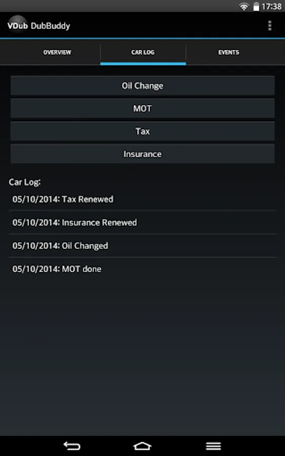 It also adds all of these events in the car log once they are done so you can keep track of what you have already done.