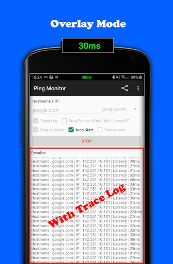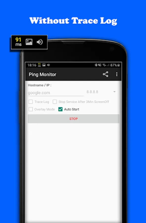 For Android users below the OREO version, the ping status cannot be displayed on the regular status bar, for that we created a floating view (overlay) which will appear in the top center of the screen, and this requires overlay view permission.