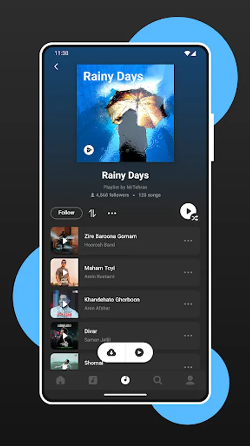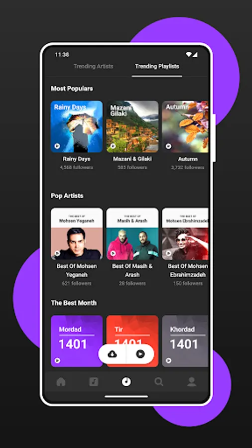 - Attractive playlists of various styles like pop, rock, traditional, rap, deep house and ... and the possibility to follow them.