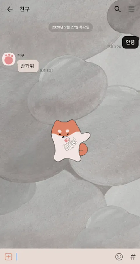 This is a KakaoTalk theme (KaTalk theme) where you can meet Shiva who is covering his mouth while wearing DApp.
