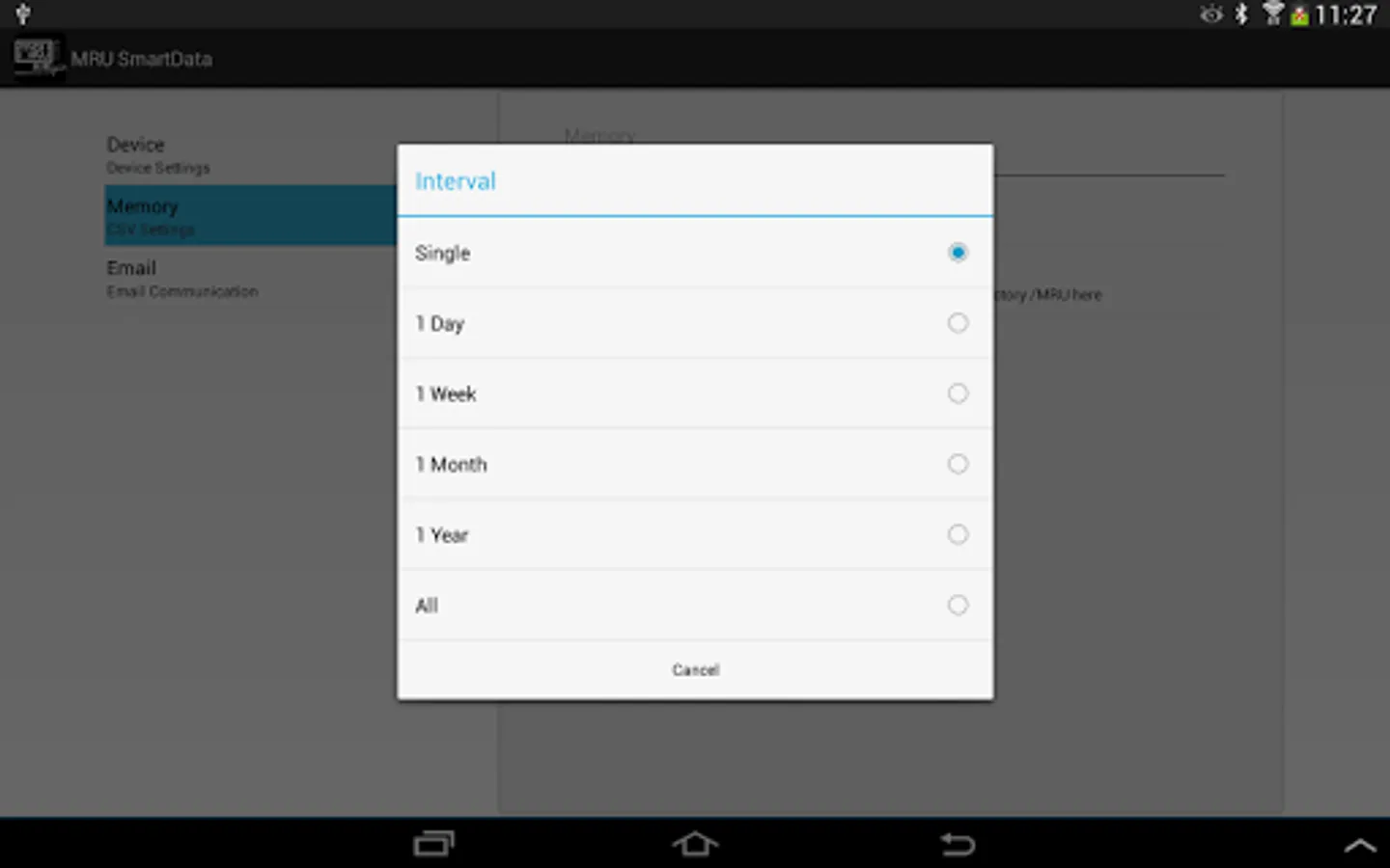 - Settings: Single, 1 Day, 1 Week, 1 Month, 1 Year, All