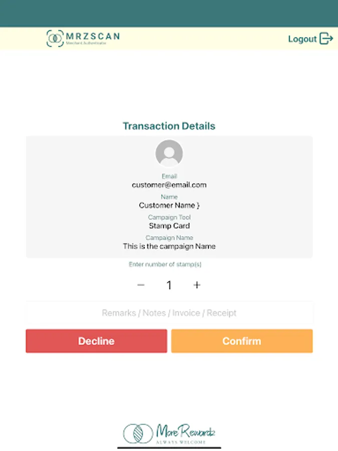MRZscan is a morerewardz merchant authentication app that allows business representatives to authenticate transactions via a QR scan or 4-digit pin from their mobile phone. Get this app to scan and authenticate transactions quickly and securely.