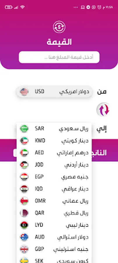 The application of the Arab currency converter, which contains most of the most frequently traded major Arab and foreign currencies