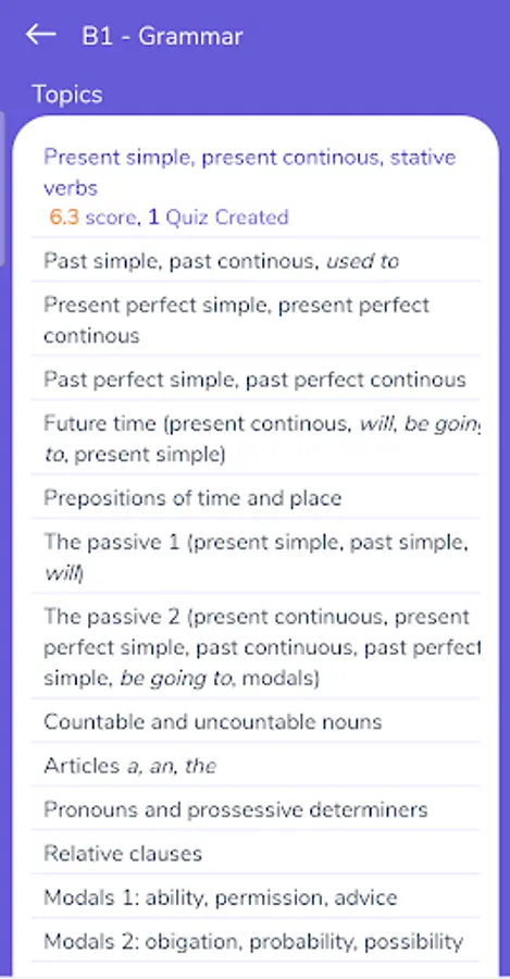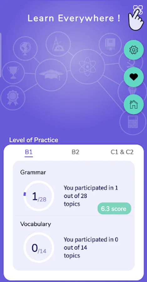 The application has more than 5000 grammar and vocabulary questions to help you practice and test your English grammar and vocabulary in B1, B2 and C1 & C2 levels.