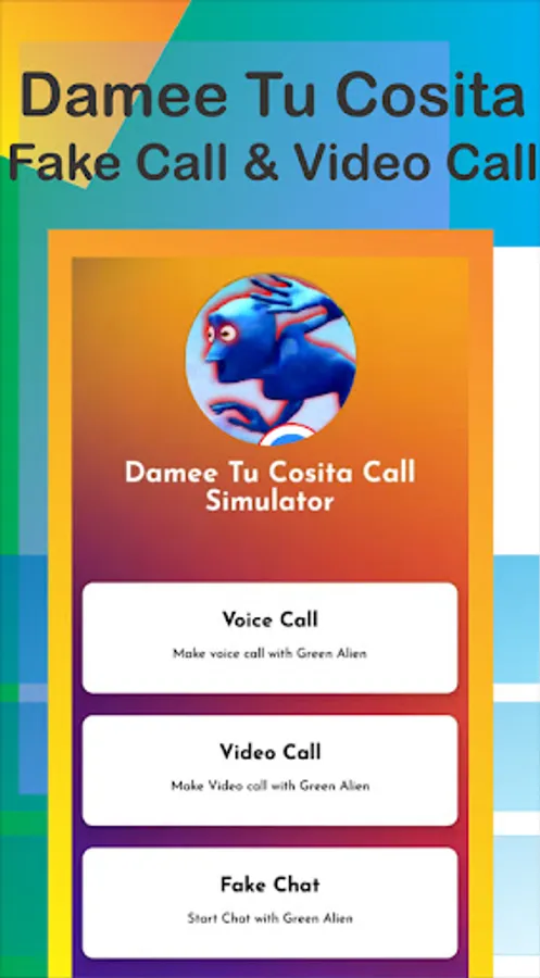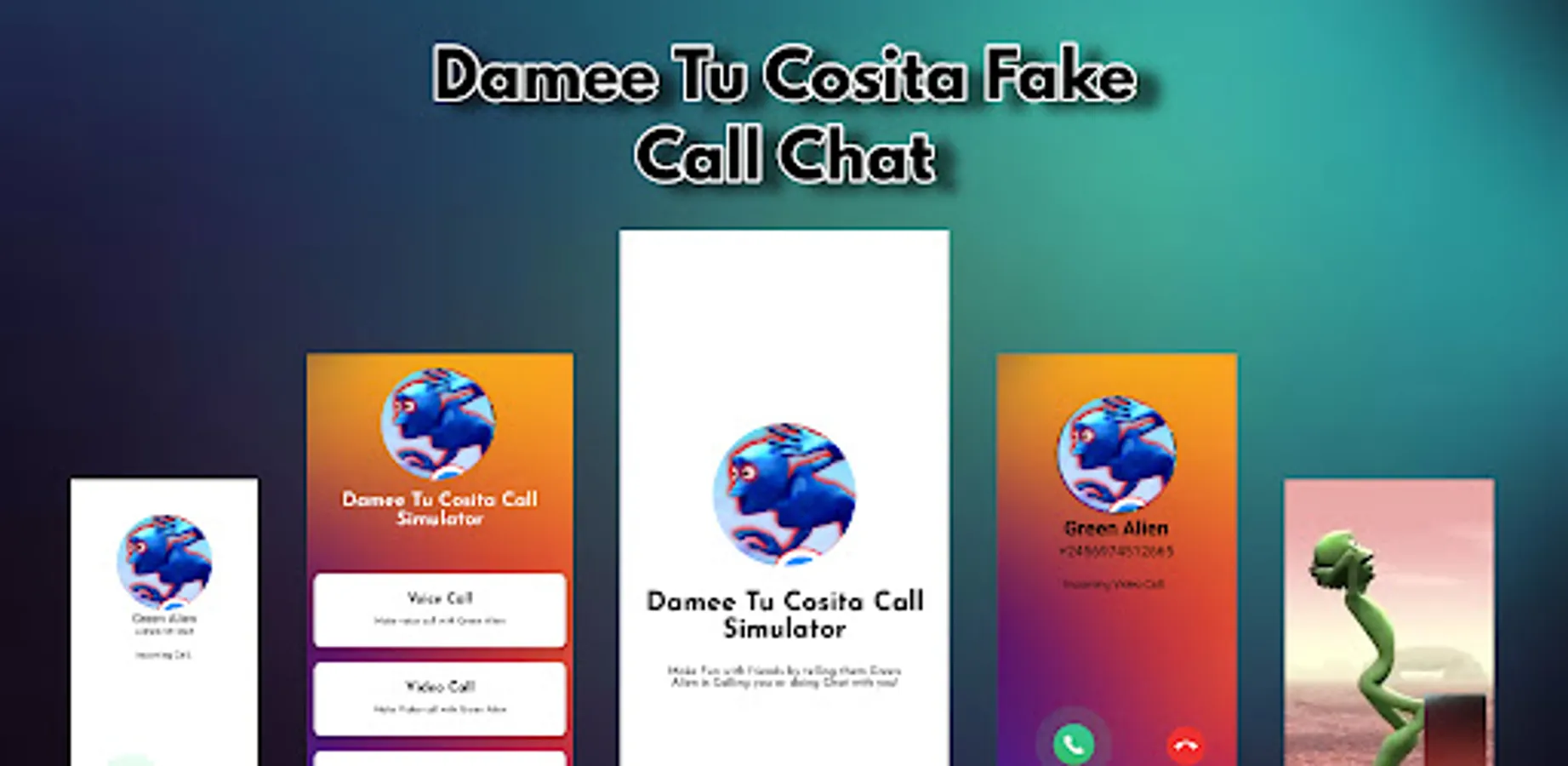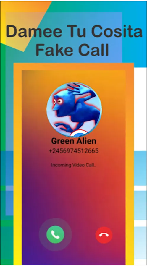 Green Alien - Damee Tu Cosita Call Simulator and Dance Challenge is a fake call prank app through this fake call app you can entertain yourself in your free and boring time. Green Alien video call is a Simulate a fake video call to make your friends feeling surprised that Best and famous chractor in the world Green Alien Calling you.