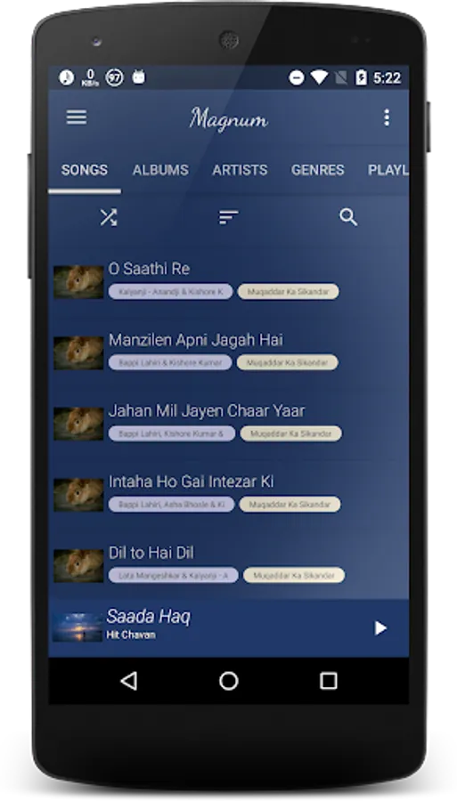 Magnum Music Player with powerful audio FX and mesmerizing, fast user interface. This music player app has Songs, Albums, Artists, Genres and Playlists at users disposal. Unlike most music players, The app doesn’t have a fixed color theme. Each song has its own theme which makes it unique and the best music player for Android.