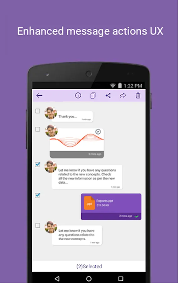 - Rich text messaging features that allow you share pictures, files, video, and audio attachments