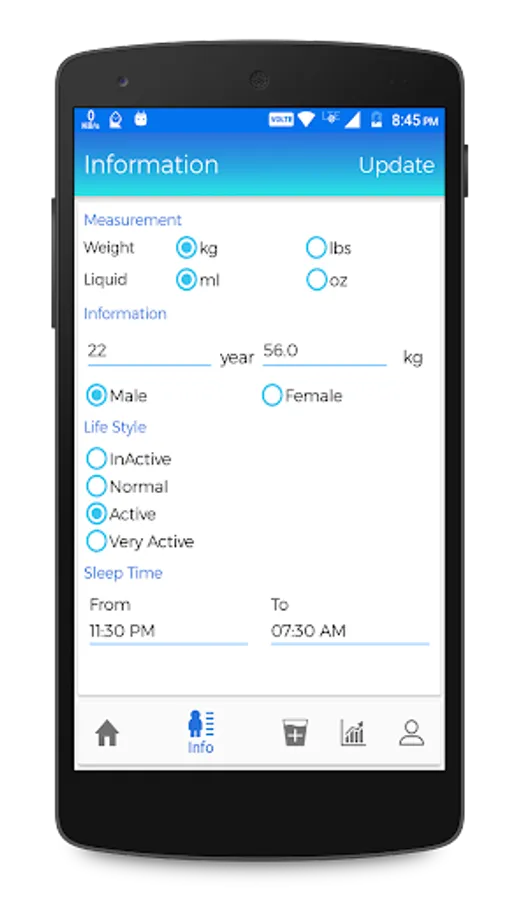 Helps you to have a good water balance on your body using notification and a tracker of how much you should drink water. Along with fibre, water is essential for good digestion. The rate of painful kidney stones is rising because people including children aren't drinking enough water.