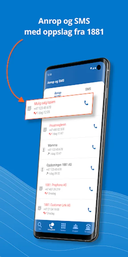 1881 Mobilsøk performs a lookup of unknown callers and displays who is calling - while it is calling. Get alert if you are dialed or receive SMS from unknown numbers including spam from sellers and the like. All searches from 1881 Mobilsøk goes towards Opplysningen 1881's database which ensures high quality.