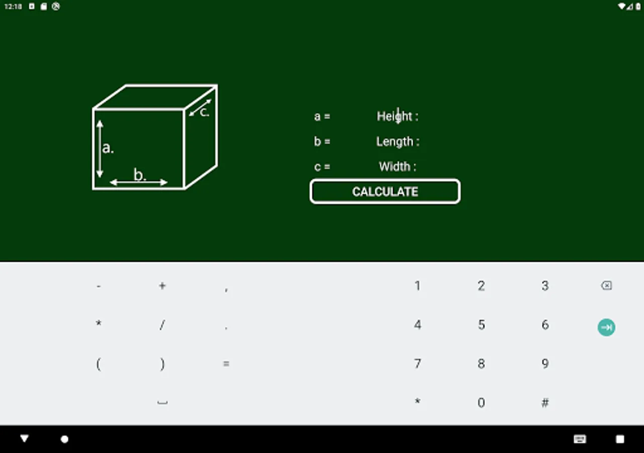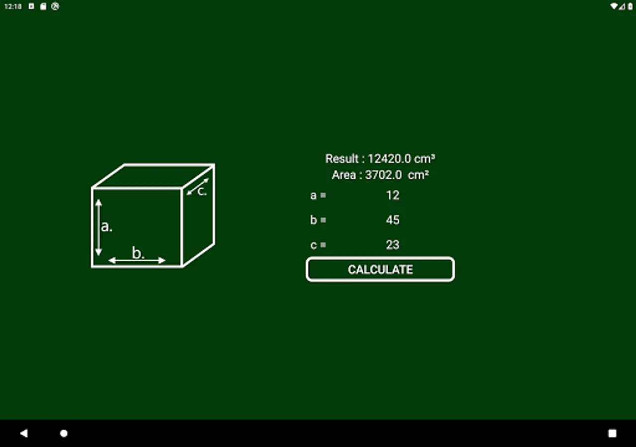 Free application to calculate an area of a Rectangular Prism And Cube.