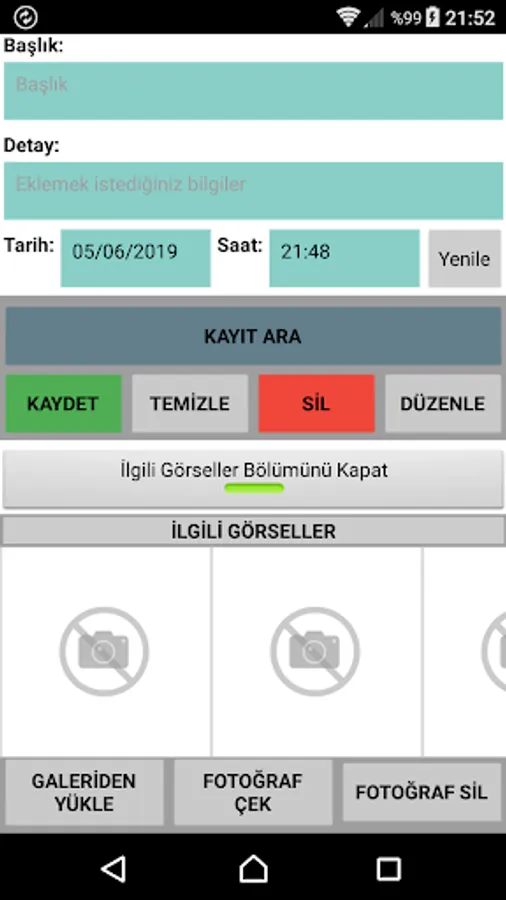 Related Images, add images you want to add to your note from the gallery or your camera;
