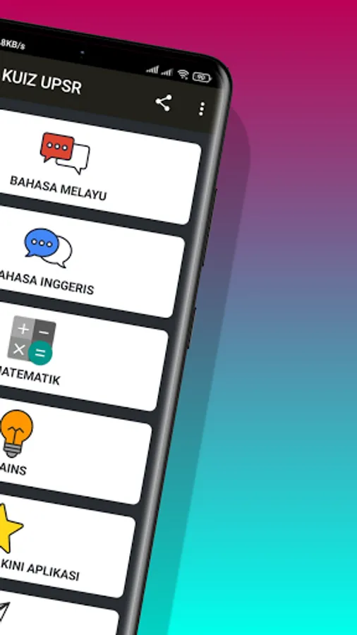 This application contains various types of sample questions of the Elementary School Achievement Test (UPSR). The subjects of the questions in this application are: